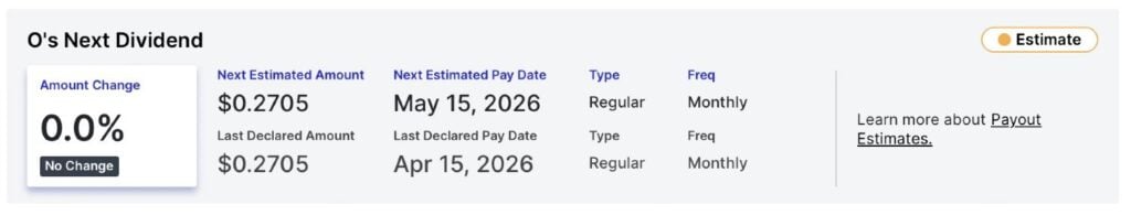 Realty Income dividend profile. Source: Dividend.com