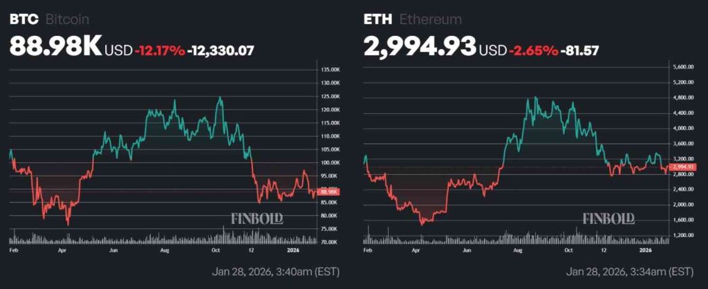 Still, there is little doubt BTC is in better shape since, at its press time price of $88,983, it is substantially below its 2021 highs near $67,000, despite being significantly below the late 2025 levels close to $125,000. Ethereum, on the other hand, is below both the 2025, 2024, and 2021 highs, as it is trading at $2,994.