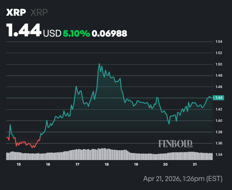 By press time, XRP was trading at $1.44, having gained about 1.2% in the past 24 hours, while on a weekly basis the token is up 5%.