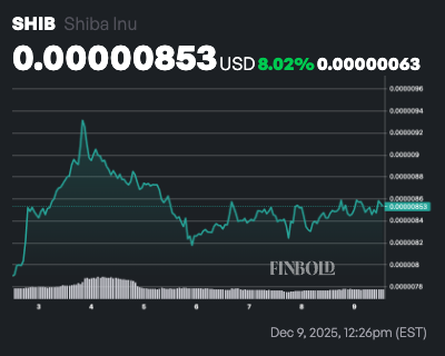 As of press time, SHIB was trading at $0.000008529, having gained about 0.4% in the past 24 hours. On the weekly timeline, the token has gained almost 8%.