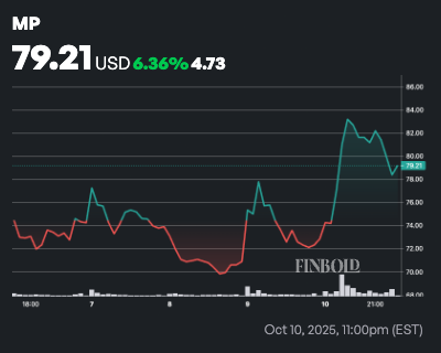 MP Materials (NYSE: MP), the largest rare earth producer in North America, rose about 8.4% to close at $78.34, reflecting increased investor focus on domestic critical mineral supply chains and regulatory support for rare earth processing.