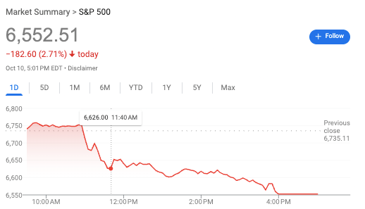 Notably, the benchmark S&P 500 index ended the day down 2.7%, wiping out about $1.5 trillion in market capitalization.