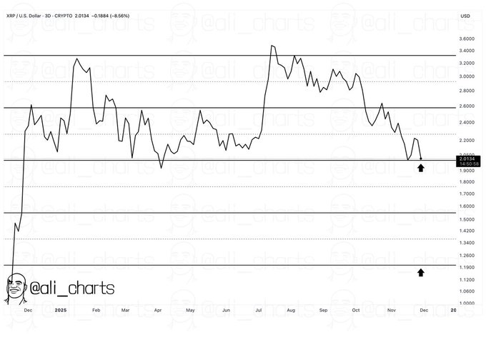 A collapse toward $1.20 would represent one of XRP’s steepest drawdowns of the year, and Martinez’s outlook suggests that such a move is increasingly plausible.