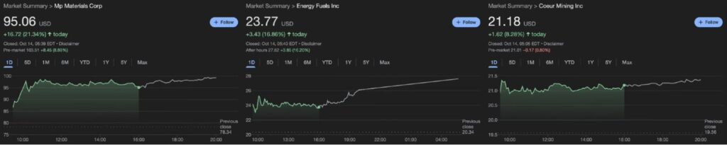 U.S. mining stocks are rallying again on Tuesday, October 14, following President Donald Trump’s reassurance that “it will all be fine” just days after threatening higher tariffs on China.