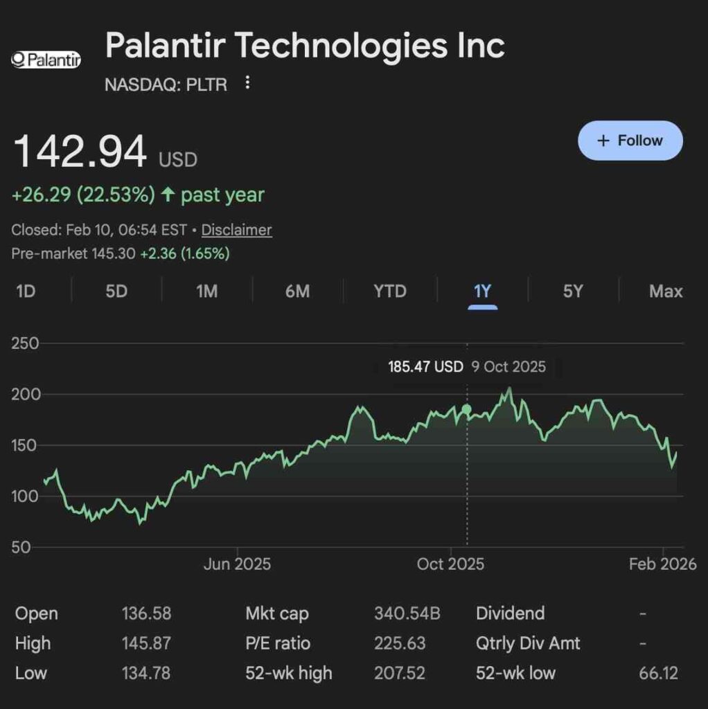 At press time, Palantir stock was trading at $142.94, having gained 22.53% on the yearly chart.
