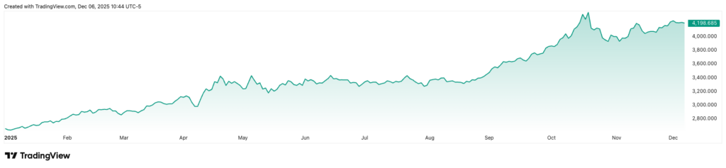 Notably, gold ended the last session valued at $4,198, down about 0.24% for the day. Year to date, the metal has gained 60%.