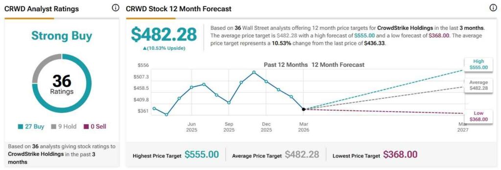 Wall Street sets CrowdStrike stock price target for the next 12 months. Source: TipRanks