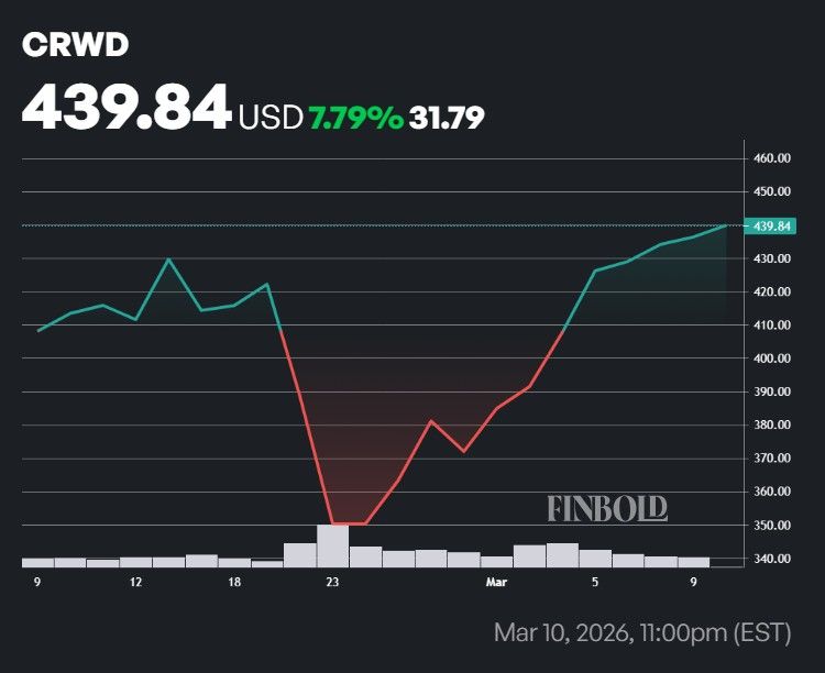 CRWD stock is 3.80% down in 2026 and has risen 7.79% in the last 30 days of trading to the March 11 press time price of $439.84.