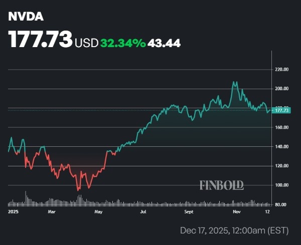 At the time of writing, NVDA shares were trading at $177.73, down roughly 15% from their October 29 record highs above $207 but still up 32% year-to-date.