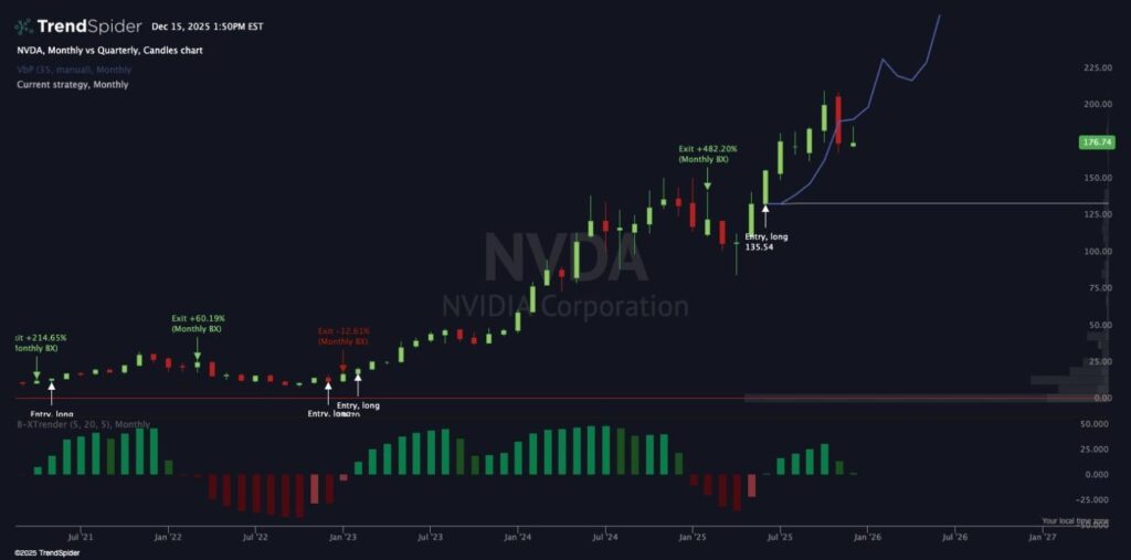Namely, according to respected analyst Peter DiCarlo, NVDA shares could likely trade at $225 by the end of March next year, as Nvidia’s monthly BX indicator, designed to help identify trend changes, shifted bullish in June, resulting in a roughly 28% rally since.