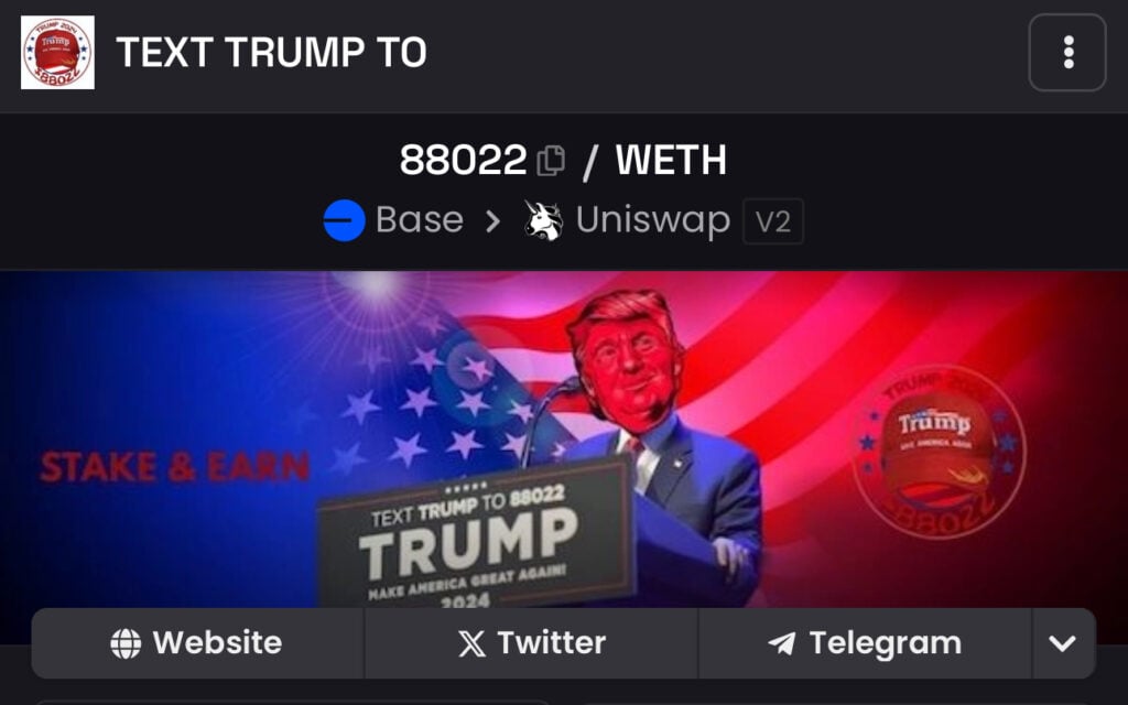 At the core of the narrative is Trump’s advocacy for direct voter communication through the simple act of texting his name to 88022. Positioned on the Base blockchain, the $88022 meme coin is actively contributing to the evolution of both the crypto sphere and America as a whole. Early investors foresee immense potential in this hidden gem, anticipating a meteoric rise once it garners widespread attention.