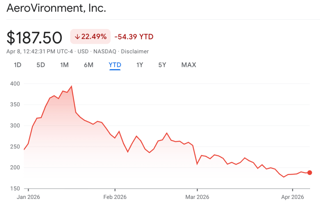 What makes the trade stand out is its timing and performance. Since the March 3 purchase, AeroVironment shares have fallen about 18.16%, underperforming the S&P 500’s 3.15% decline and extending an ongoing downtrend from earlier highs.