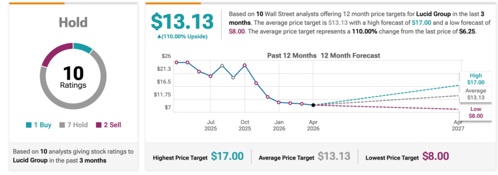 Although Lucid reaffirmed its 2026 production guidance of 25,000 to 27,000 vehicles and continues to pursue long-term growth through new platforms and software-driven revenue, analysts remain cautious.
