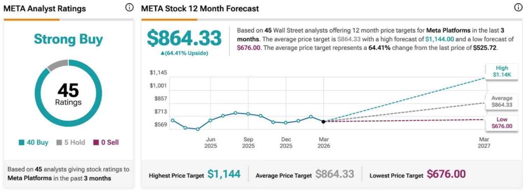 Despite the most recent cut on Morgan Stanley’s part, the average META share price target for the next year still translates into an upside potential of nearly 65%, sitting at just north of $864 based on the Wall Street analyses available on TipRanks.