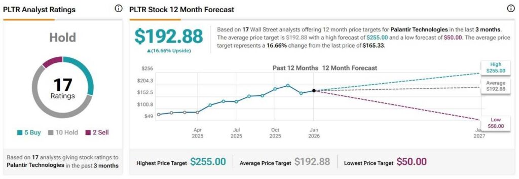 Mizuho’s view aligns with the broader Wall Street sentiment. Analysts on average rate Palantir a ‘Hold,’ with consensus price targets pointing to roughly 16.7% upside upside in 2026, per data retrieved by Finbold from TipRanks on January 22.