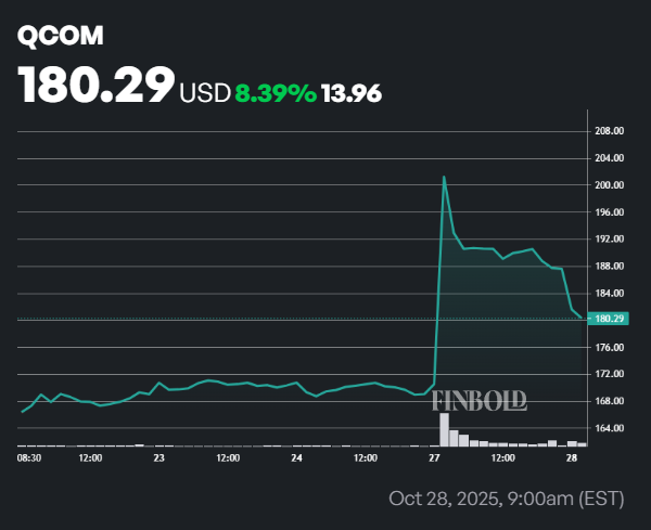 Already on Monday, October 27, UBS’s Timothy Arcuri raised his QCOM stock price target from $165 to $175 (-3.01%), albeit while reiterating his “Hold” rating.