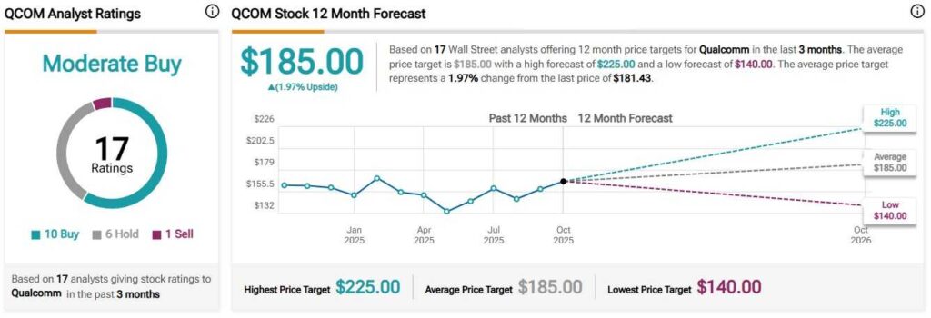 As of the time of writing, Qualcomm holds a “Moderate Buy” consensus rating based on a total of 17 evaluations aggregated on the market analysis platform TipRanks over the past three months.