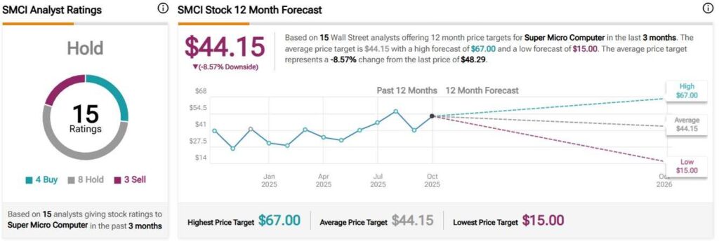 Wall Street is thus not too optimistic about Super Micro Computer’s long-term success. SMCI shares enjoyan overall “Hold” rating on the analyst platform TipRanks and the average price target of $44.15 for the next 12 months, which suggests a further -8.57% decline from the current price.