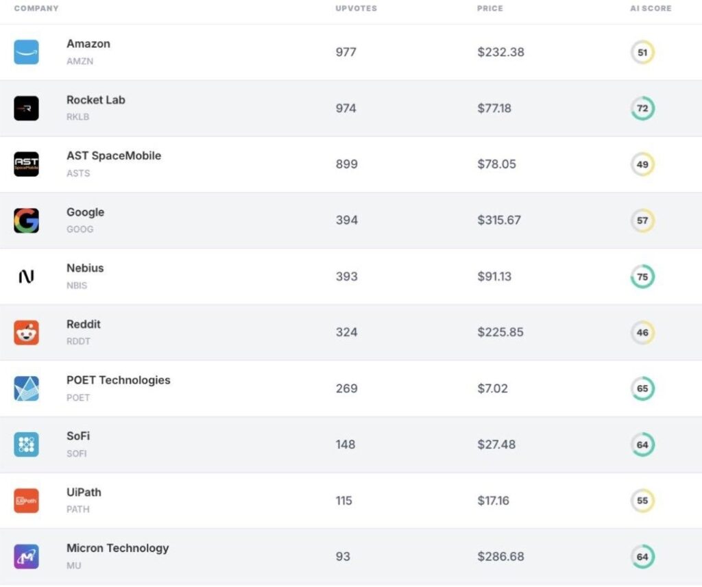 Nebius Group (NASDAQ: NBIS), an emerging AI and space player, secured spot number five, underscoring the ‘barbell’ strategy popular on the forum, which involves pairing perceived stability from large-cap tech with high-upside, high-volatility bets.