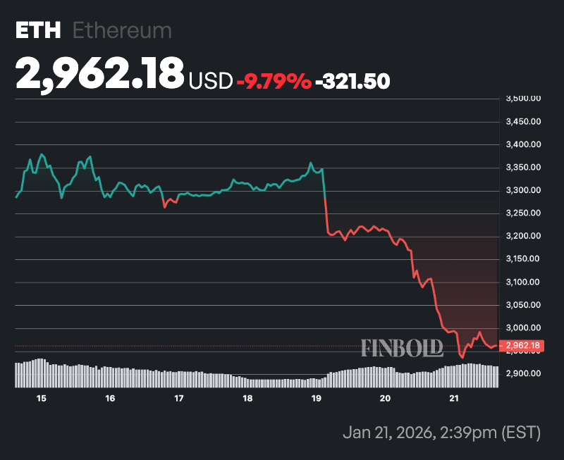 Notably, as of press time, Ethereum had declined more than 4% over the past 24 hours, trading at $2,962. Over the past week, the asset has fallen nearly 10%.