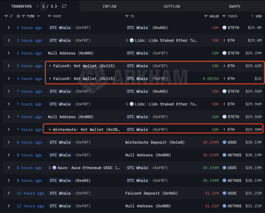 Institutional buying has also extended beyond Trend Research. An over-the-counter whale wallet labeled 0xFB7 acquired 20,000 ETH worth about $58.8 million through liquidity providers FalconX and Wintermute, signaling sustained institutional demand despite weak spot market sentiment.