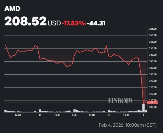 At press time, AMD stock was trading at $208.52, the latest plunge having extended its weekly losses to 17.53%.