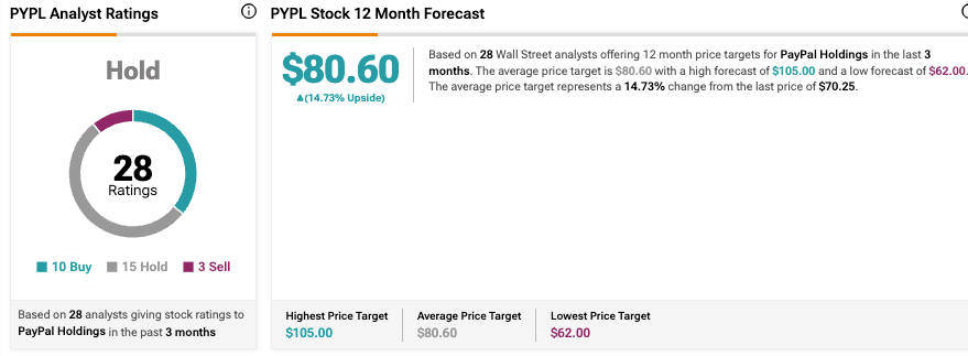 According to data from 28 analysts surveyed by TipRanks, PayPal’s stock carries an average price target of $80.60, implying a potential 14.73% upside. The most optimistic forecast sees the shares reaching $105, while the most conservative view places the stock as low as $62.