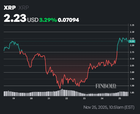 By press time, XRP was trading at $2.23, having rallied almost 8% in the past 24 hours, and is up 3% on the weekly chart.