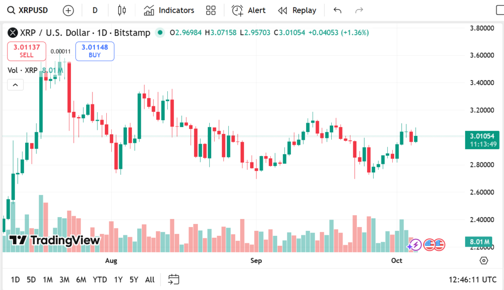 The XRP Price Prediction 2025 remains one of the most debated topics among crypto investors, especially as XRP continues to maintain strong momentum in early Q4. Currently trading at $3.01, up by 0.77%, XRP holds a market capitalization of $181.19 billion.
