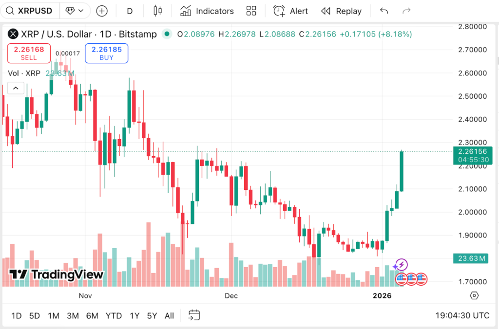 Any realistic XRP Price Prediction starts with current performance data. Currently trading at the price of $2.26, following a significant gain of about 7.61% in the last 24 hours, its market capitalization has reached $137.02 billion.